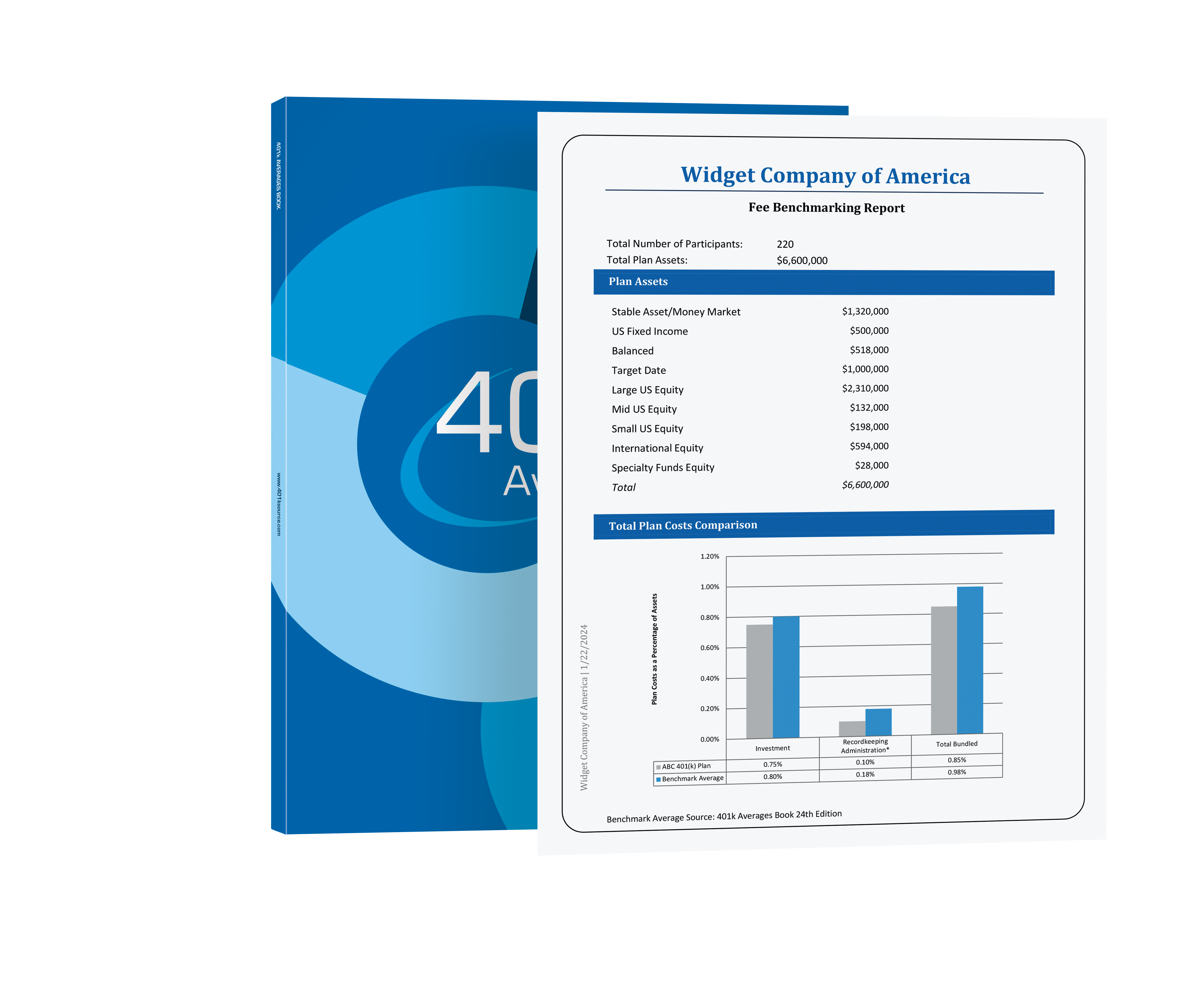 The Comparator Software Program contains all the data within the 401k Averages Book, as well as, $30,000 and $70,000 average account balance data, along with 5,000 participant data. The 401k Comparator Software produces a more granular 401k plan benchmarking data point based on your input. There are several different modules available and the program and reports are customized to your needs.